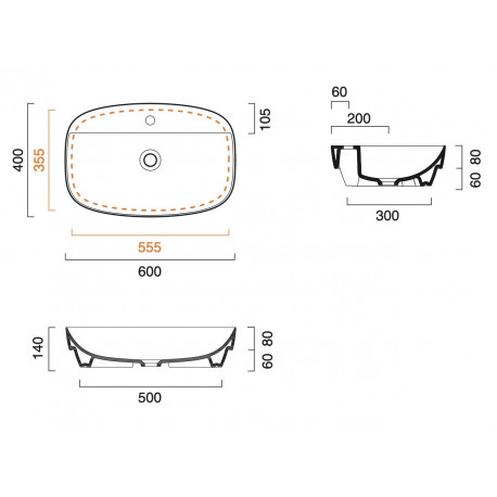Catalano > Ceramika sanitarna > Umywalki wpuszczane w blat > Green Lux > Umywalka wpuszczana w blat Catalano Green Lux 60x40 cm otwór na baterię, bez przelewu, biała