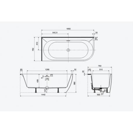 Excellent > Wanny > Wanny wolnostojące > Wolnostojące > Wanna wolnostojąca Excellent Oceana 2.0, 165x75 cm, narożna, lewa, akrylowa - biała