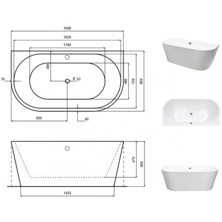 Besco > Wanny > Wanny wolnostojące > Wanny wolnostojące > Wanna przyścienna Besco Vica New, 170x80 cm, akrylowa, biała + syfon chrom z napełnieniem przez przelew