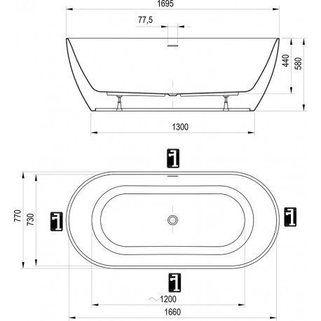 Ravak > Wanny > Wanny wolnostojące > Pozostałe > Wanna wolnostojąca Ravak Freedom O Tec, akrylowa,170x77 cm - biała, osłona odpływu biała