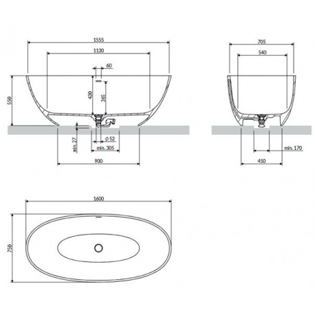 Omnires > Wanny > Wanny wolnostojące > Wolnostojące > Wanna wolnostojąca Omnires Shell M+ 160 x 75 cm, z przelewem - biała