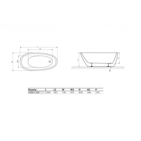 Excellent > Wanny > Wanny wolnostojące > Promocje Excellent > Wanna wolnostojąca Excellent Olia 2.0, 150x73cm, owalna, akrylowa, biała