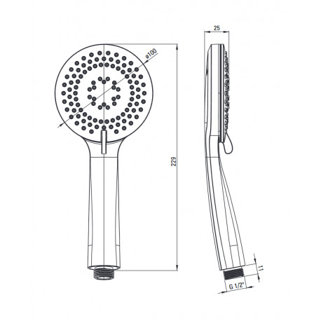 - regulowany kąt ustawienia słuchawki natryskowej