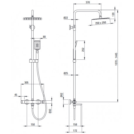 Deante > Armatura / baterie > Zestawy natryskowe z baterią > Armatura (baterie) > Deszczownica z baterią wannową termostatyczną, Deante - nero (czarny mat)