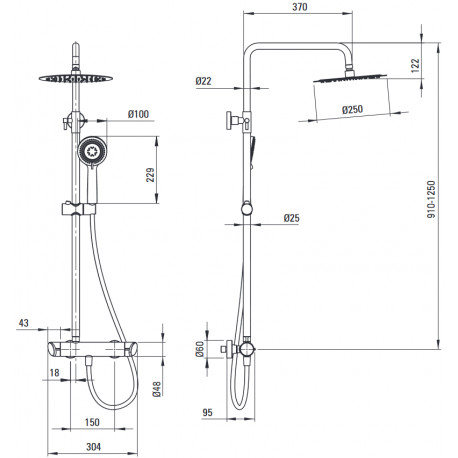 - regulowana wysokość górnej deszczowni: tak