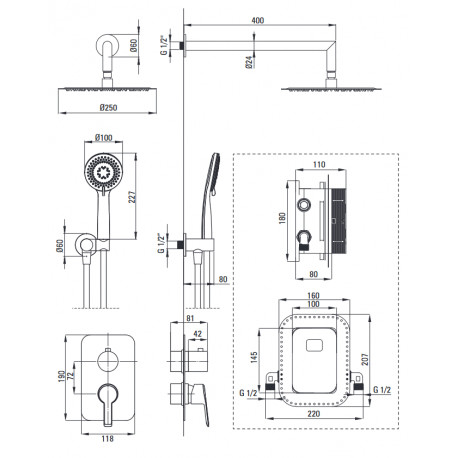 Deante > Armatura / baterie > Zestawy natryskowe z baterią > Arnika > Zestaw prysznicowy podtynkowy z BOXem mieszaczowym, Deante Arnika - nero (czarny mat)