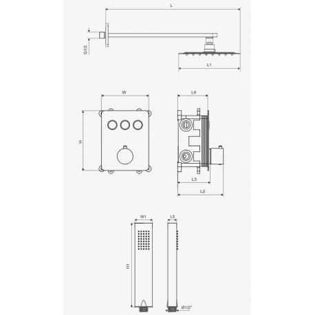 Zestaw podtynkowy prysznicowo-wannowy Krotos z 3 funkcjami składa się z baterii prysznicowo-wannowej Krotos, deszczowni górnej oraz zestawu prysznicowego punktowego.