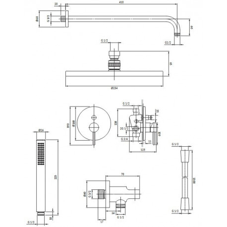 - ramię prysznicowe, zasięg od ściany: 41 cm