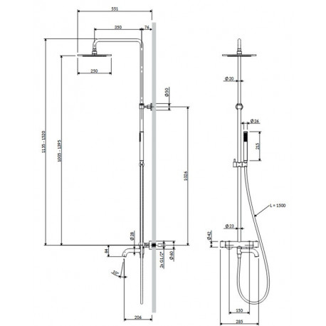 Omnires > Armatura / baterie > Zestawy natryskowe z baterią > Y > System wannowo-prysznicowy, natynkowy, termostatyczny, Omnires Y - czarny półmat