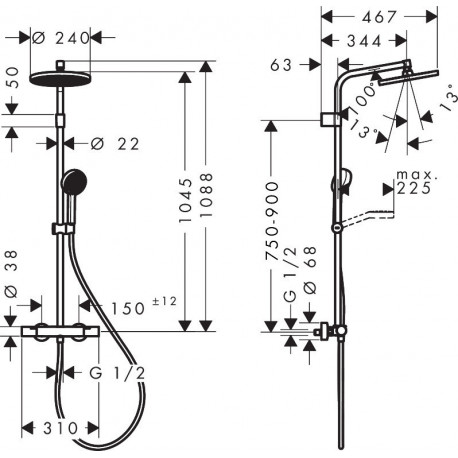 - długość ramienia prysznicowego: 344 mm