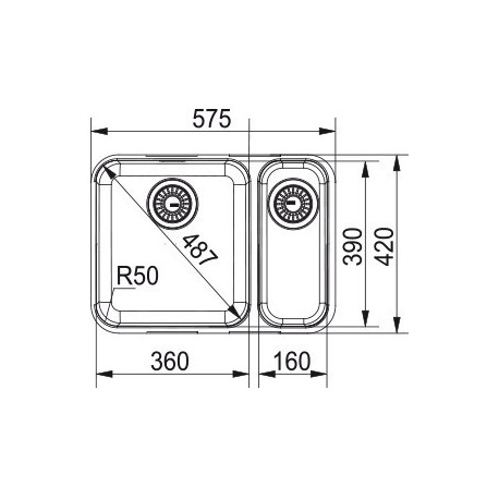 Franke > Zlewozmywaki > Zlewozmywaki kuchenne > Zlewozmywaki podblatowe > Zlewozmywak Largo LAX 160-36-16, podblatowy, półtorakomorowy (mała komora po prawej stronie), 58x42 cm - stal szlachetna